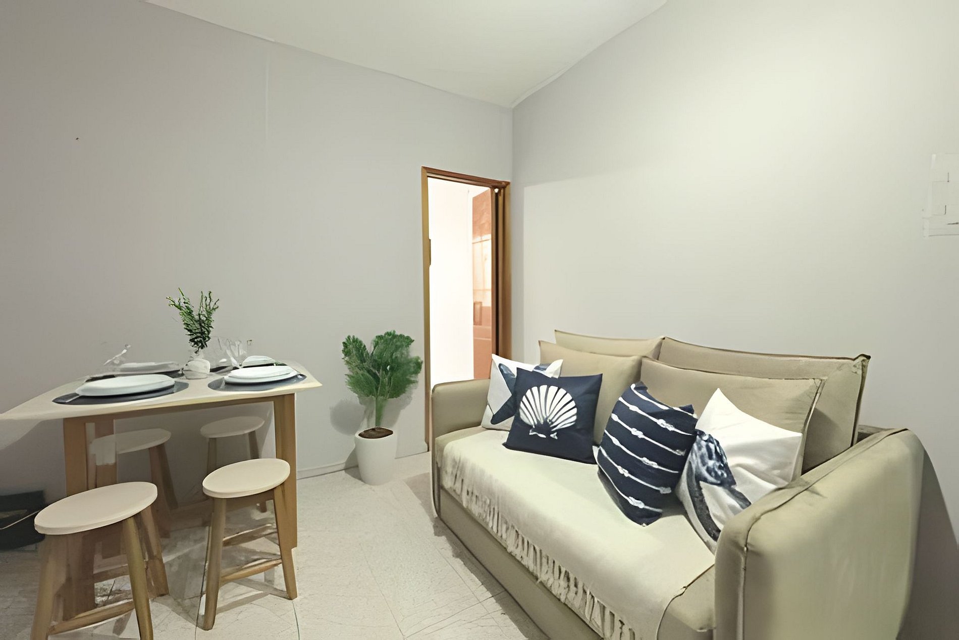 Belíssimo Apê, a 5 min da Praia, até 4 pessoas.