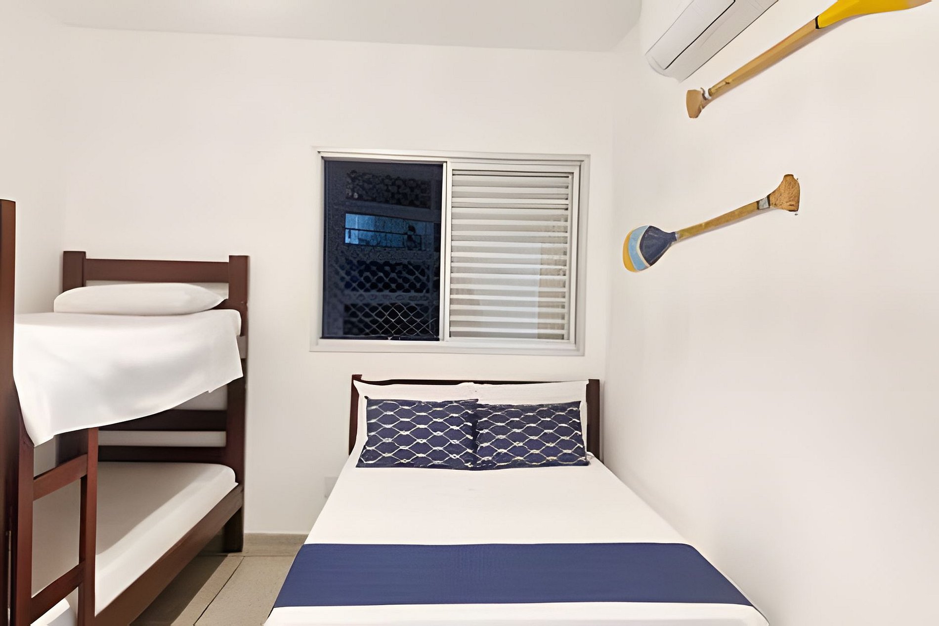 1 quarto com cama casal e 2 beliches